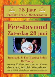 In de grote feesttent in het centrum van Westerhoven starten we vrijdagavond met het officiële gedeelte voor genodigden. Het jubileumboek ‘Fanfare Irene, een kleurrijke vereniging’ zal dan worden gepresenteerd.