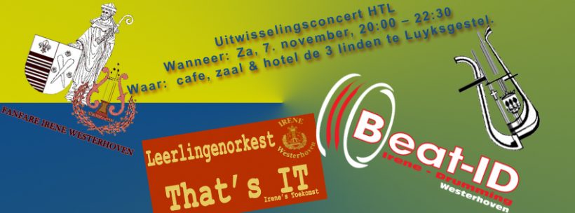 Op zaterdag 7 november 2015 gaat het jeugdorkest, slagwerkgroep en de concertband van onze vereniging optreden in Luyksgestel. Dit doen we met samenwerking van harmonie Theodatus en hun slagwerkgroep. Dit zal vanaf 20.00 uur plaats vinden in Hotel-Café-Restaurant-Zaal “De Drie Linden” (Rijt 2, Luyksgestel). Elke groep zal ongeveer 20 minuten optreden, de verwachting is dat er nog 10 minuten bij […]